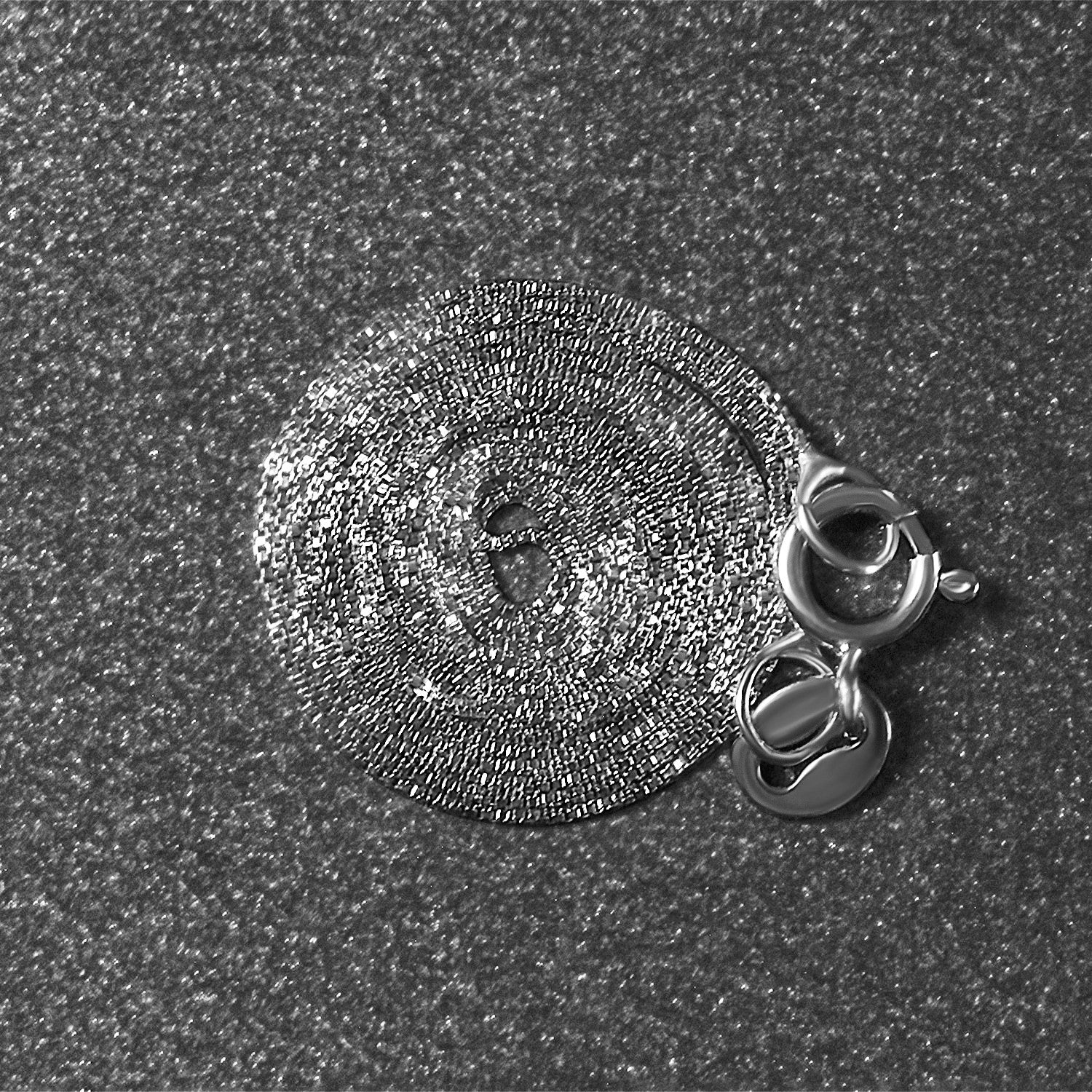This classic box chain comes in 14k white gold and has a width of 0.40 millimeters.