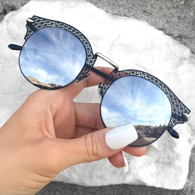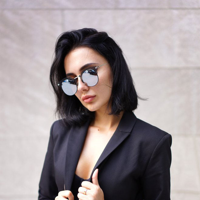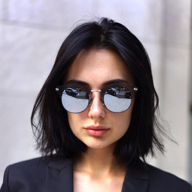 Fulfilled by our friends at TopFoxx COLOR  Matte Black Frame/Mirror Silver Lens CONTENT & CARE Hand-assembled & Imported One Size Includes free carrying case as shown in the picture + cleaning cloth DETAILS & FIT Length (longest) : 13 cm Width (longest) : 5 cm UV 400 Protection