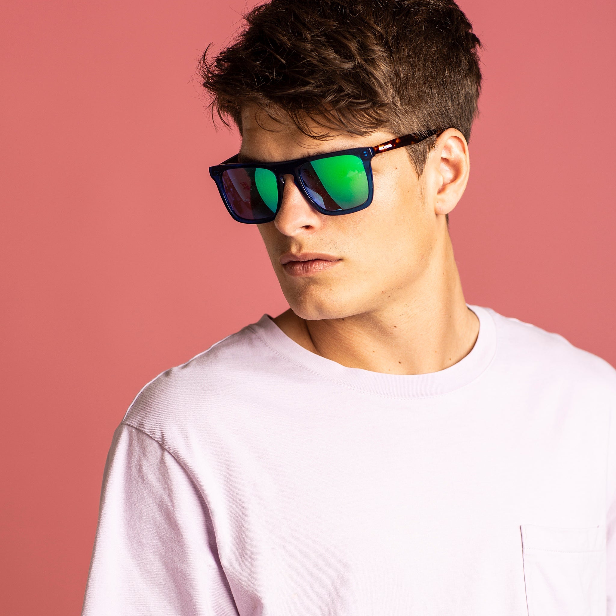Get the perfect combination of style and function with our Lighthouse sunglasses. Sleek straight bridge design and signature Lighthouse temples in a variety of color combinations. High-quality blue acetate frame, tortoise temples and blue mirrored lenses provide both comfort and durability. Upgrade your look and protect your eyes with our Grapetree sunglasses today.