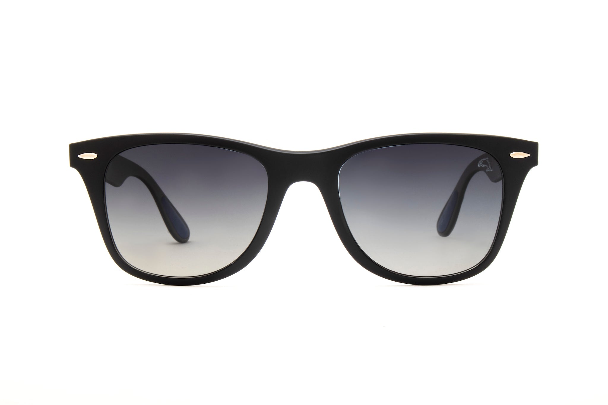 Featured in TR90 ultra light black frame with blue and metallic details and black gradient polarized lenses.