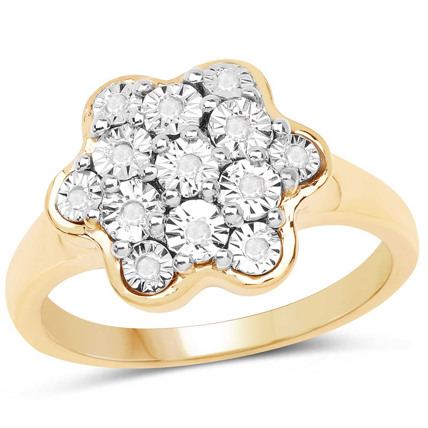 14K Yellow Gold Plated 0.07 ct. Genuine White Diamond .925 Sterling Silver Ring for Women