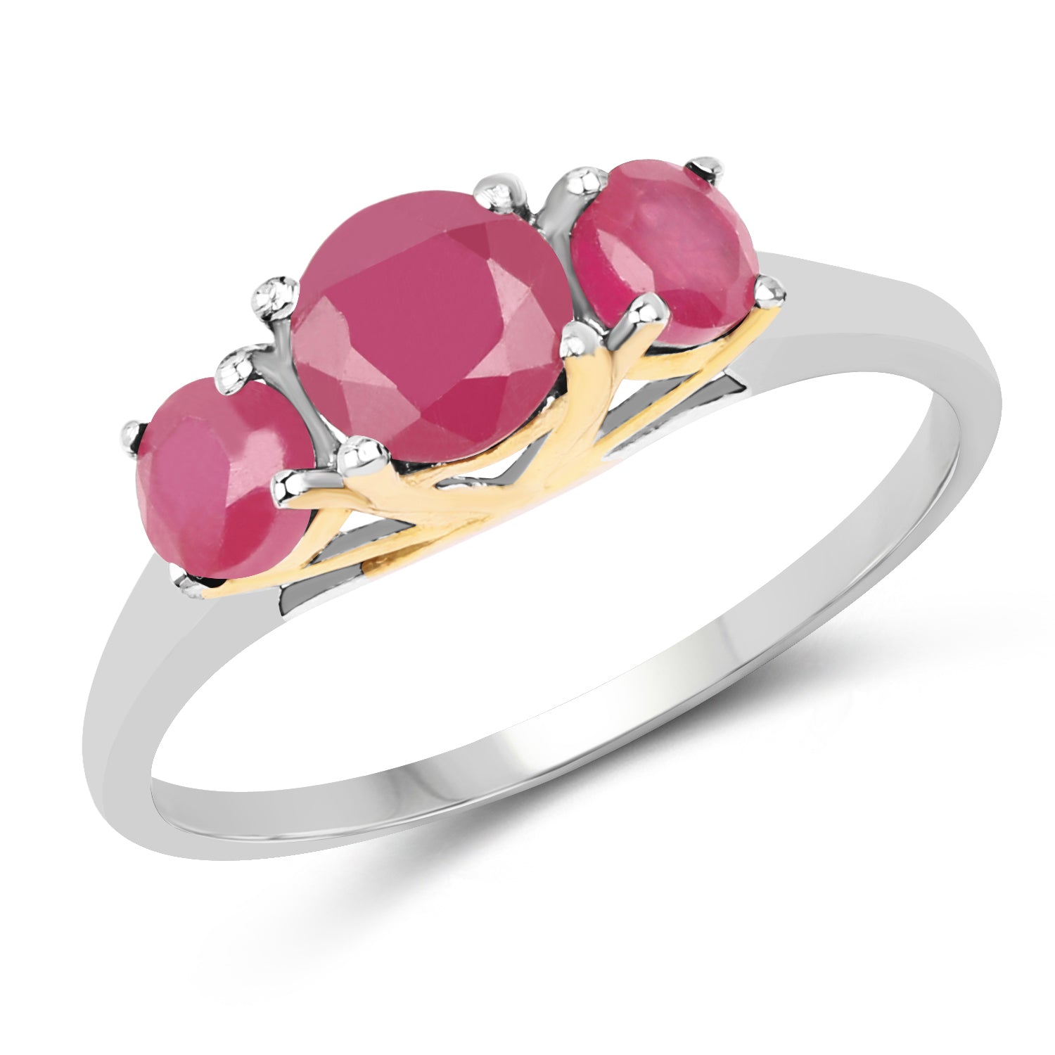 14K Yellow Gold Plated 1.50 Carat Genuine Glass Filled Ruby .925 Sterling Silver Ring Ruby Glass Filled:Round/5.50mm 1/0.90 ct.w + Ruby Glass Filled:Round/3.80mm 2/0.60 ct.w
