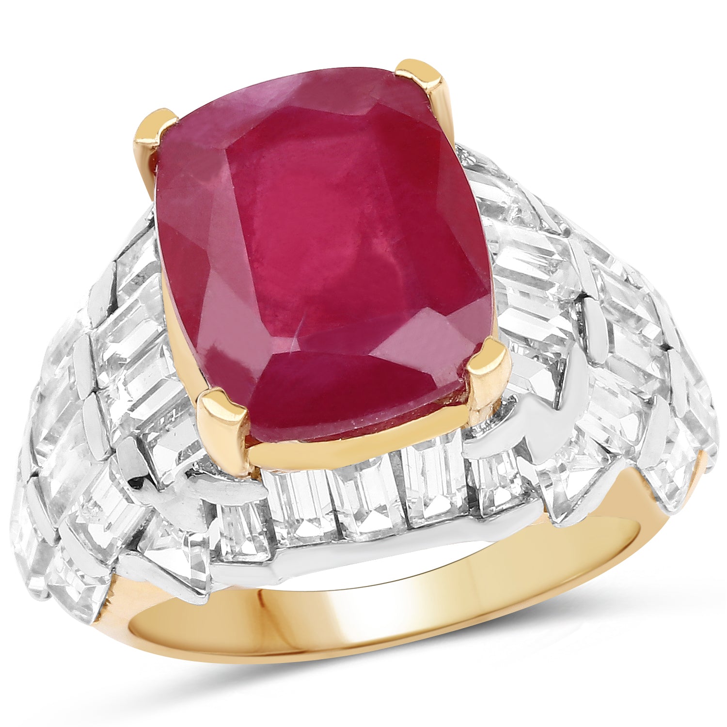 14K Yellow Gold Plated 10.76 Carat Glass Filled Ruby and White Topaz .925 Sterling Silver Ring