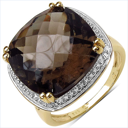 14K Yellow Gold Plated 12.10 Carat Genuine Smoky Quartz .925 Sterling Silver Ring