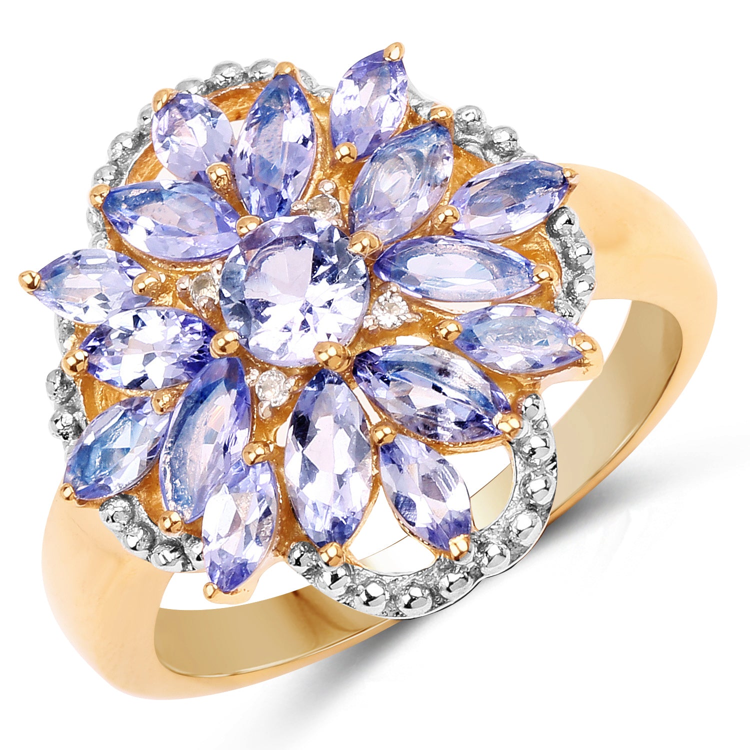 14K Yellow Gold Plated 2.01 Carat Genuine Tanzanite & White Topaz .925 Sterling Silver Ring