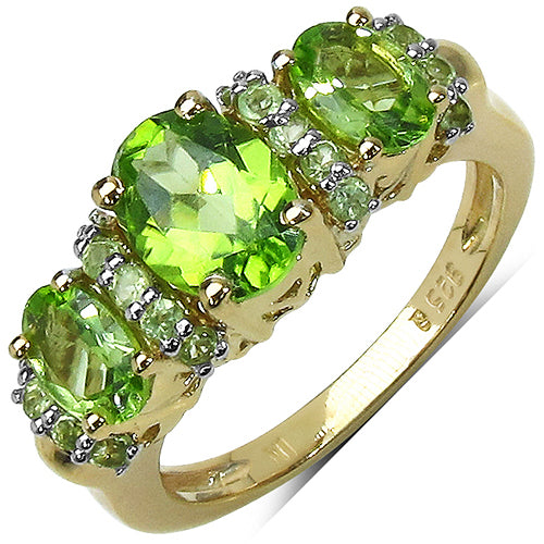 14K Yellow Gold Plated 2.46 Carat Genuine Peridot .925 Sterling Silver Ring
