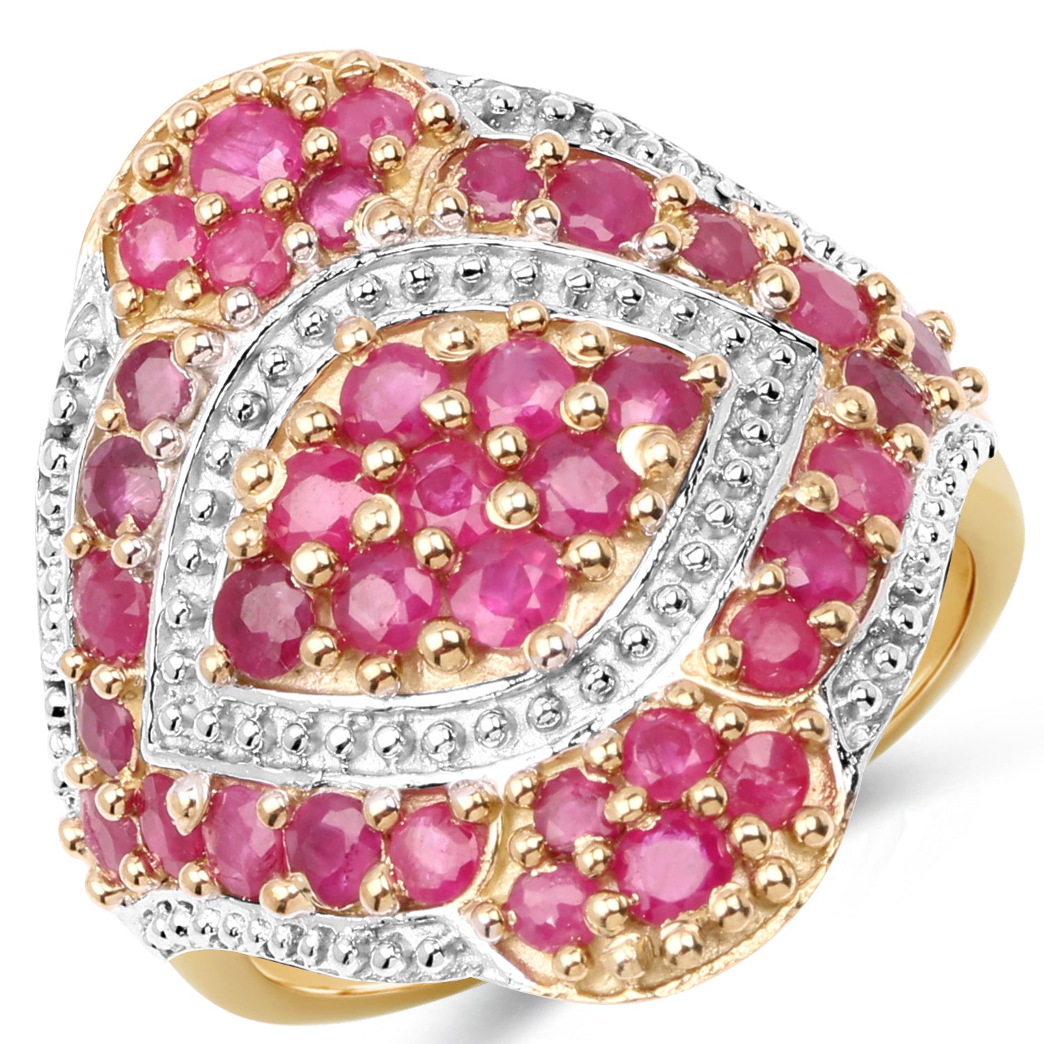 14K Yellow Gold Plated 2.46 Carat Genuine Ruby .925 Sterling Silver Ring