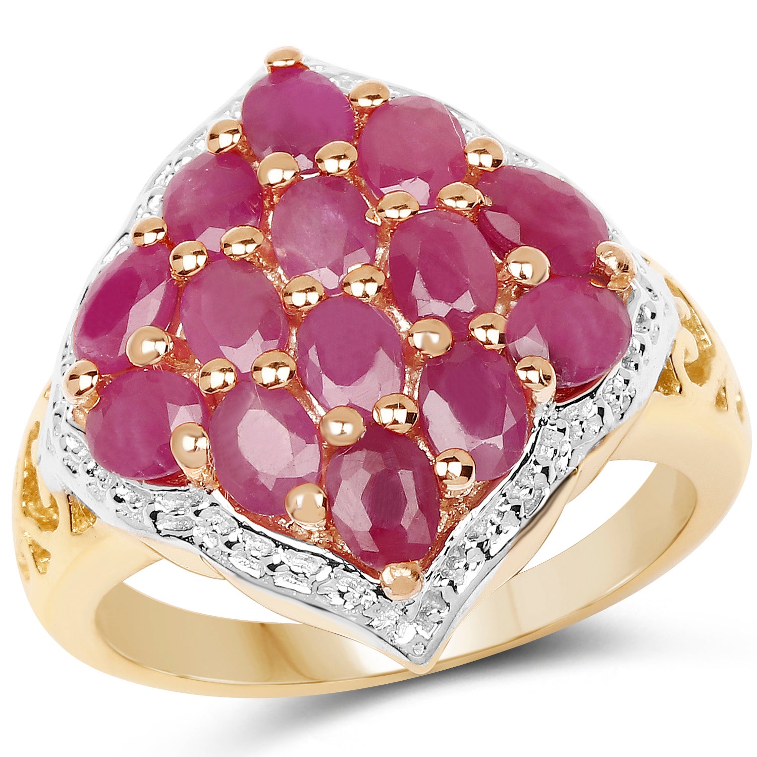 14K Yellow Gold Plated 3.08 Carat Genuine Ruby .925 Sterling Silver Ring