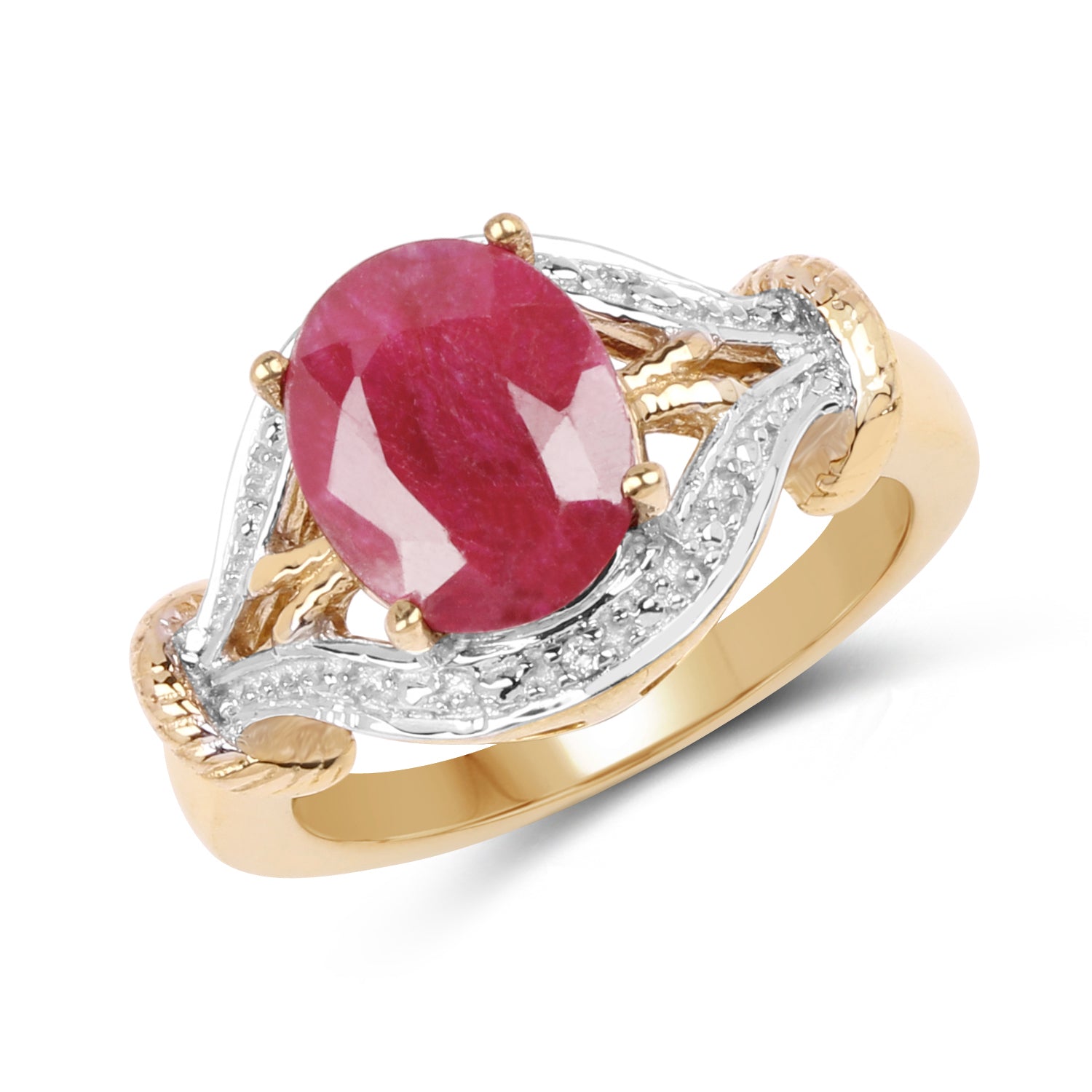 14K Yellow Gold Plated 3.26 Carat Genuine Ruby and White Topaz .925 Sterling Silver Ring