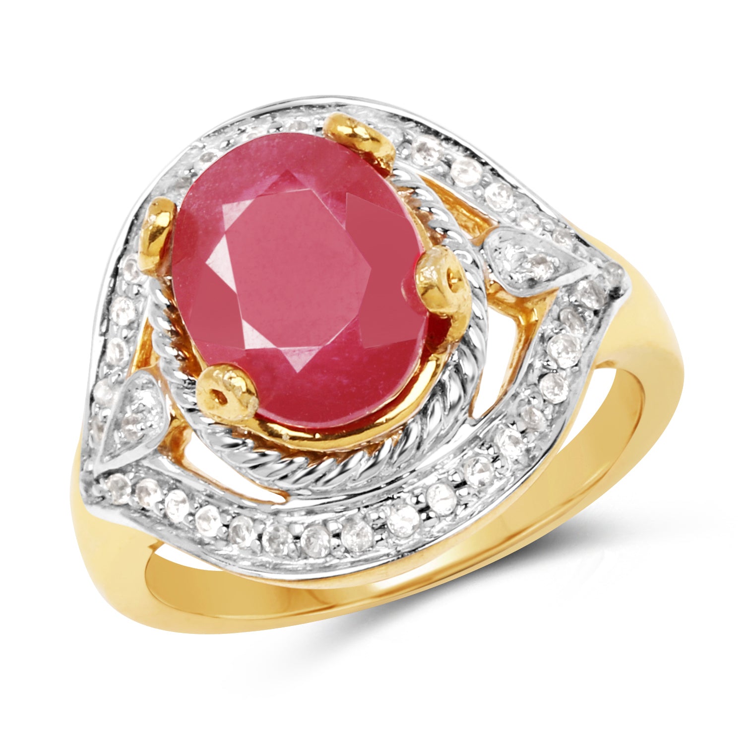 14K Yellow Gold Plated 3.66 Carat Genuine Glass Filled Ruby & White Topaz .925 Sterling Silver Ring