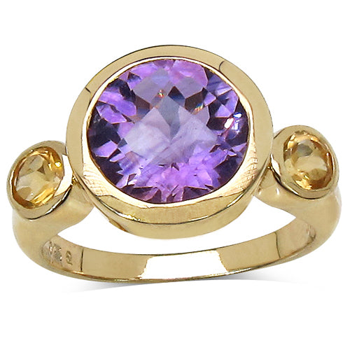 14K Yellow Gold Plated 3.90 Carat Genuine Amethyst & Citrine .925 Sterling Silver Ring