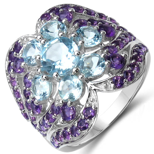 14K Yellow Gold Plated 4.58 Carat Genuine Amethyst & Blue Topaz .925 Sterling Silver Ring