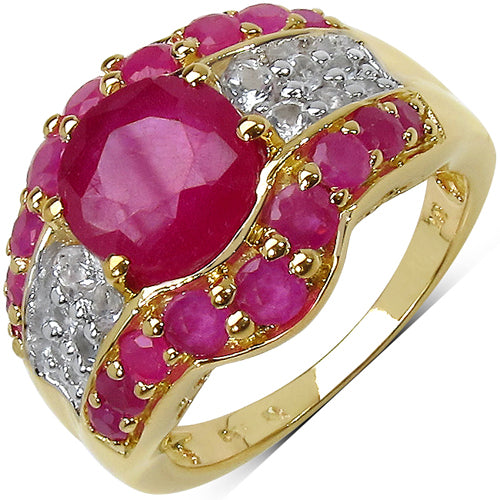 14K Yellow Gold Plated 4.68 Carat Genuine Ruby & White Topaz .925 Sterling Silver Ring