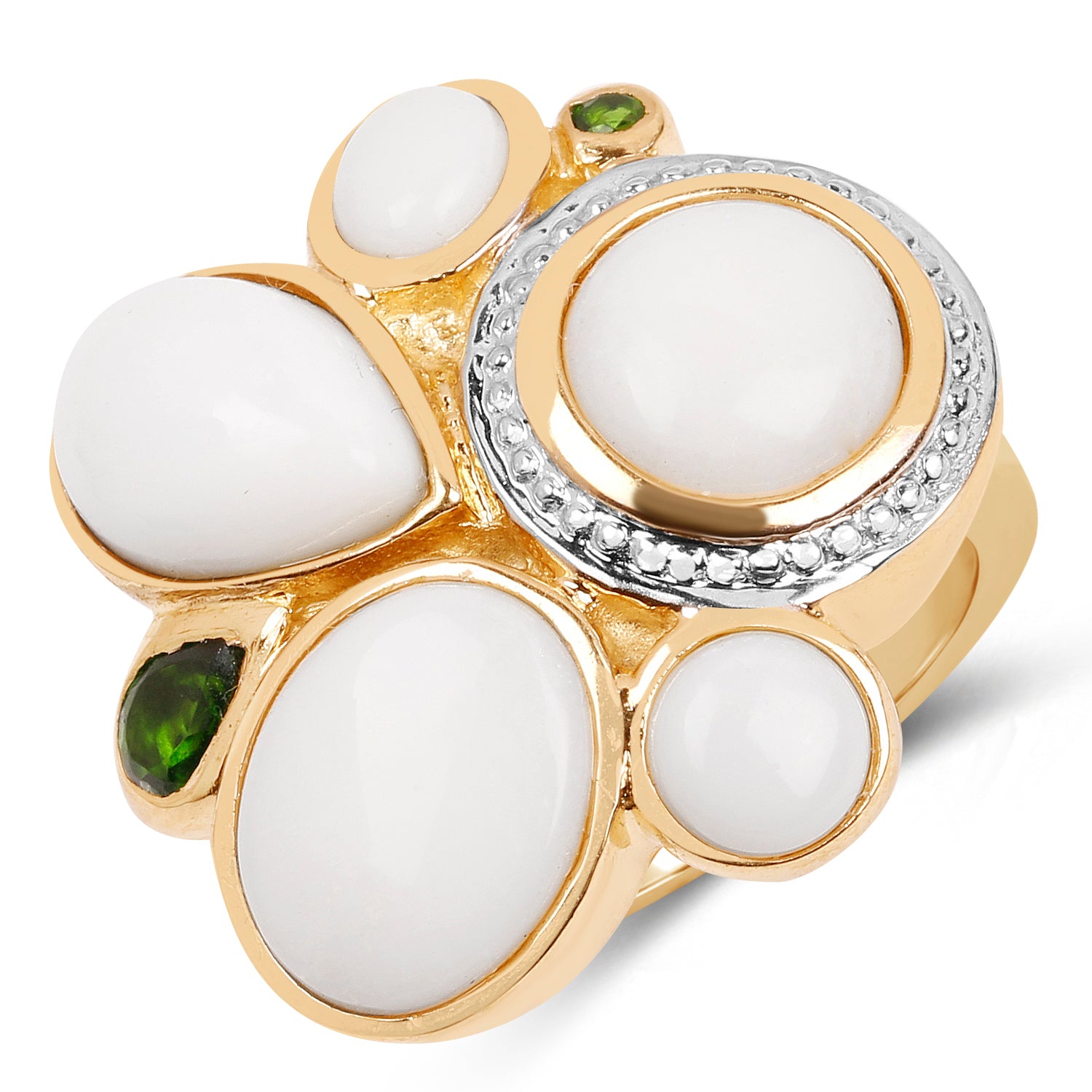 14K Yellow Gold Plated 5.01 Carat Genuine Opal & Chrome Diopside .925 Sterling Silver Ring