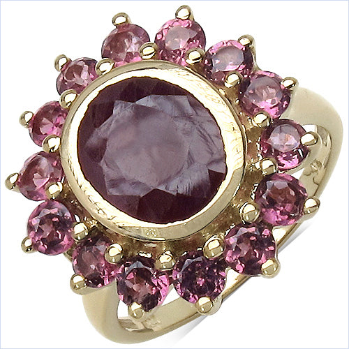 14K Yellow Gold Plated 5.07 Carat Genuine Ruby & Rhodolite .925 Sterling Silver Ring