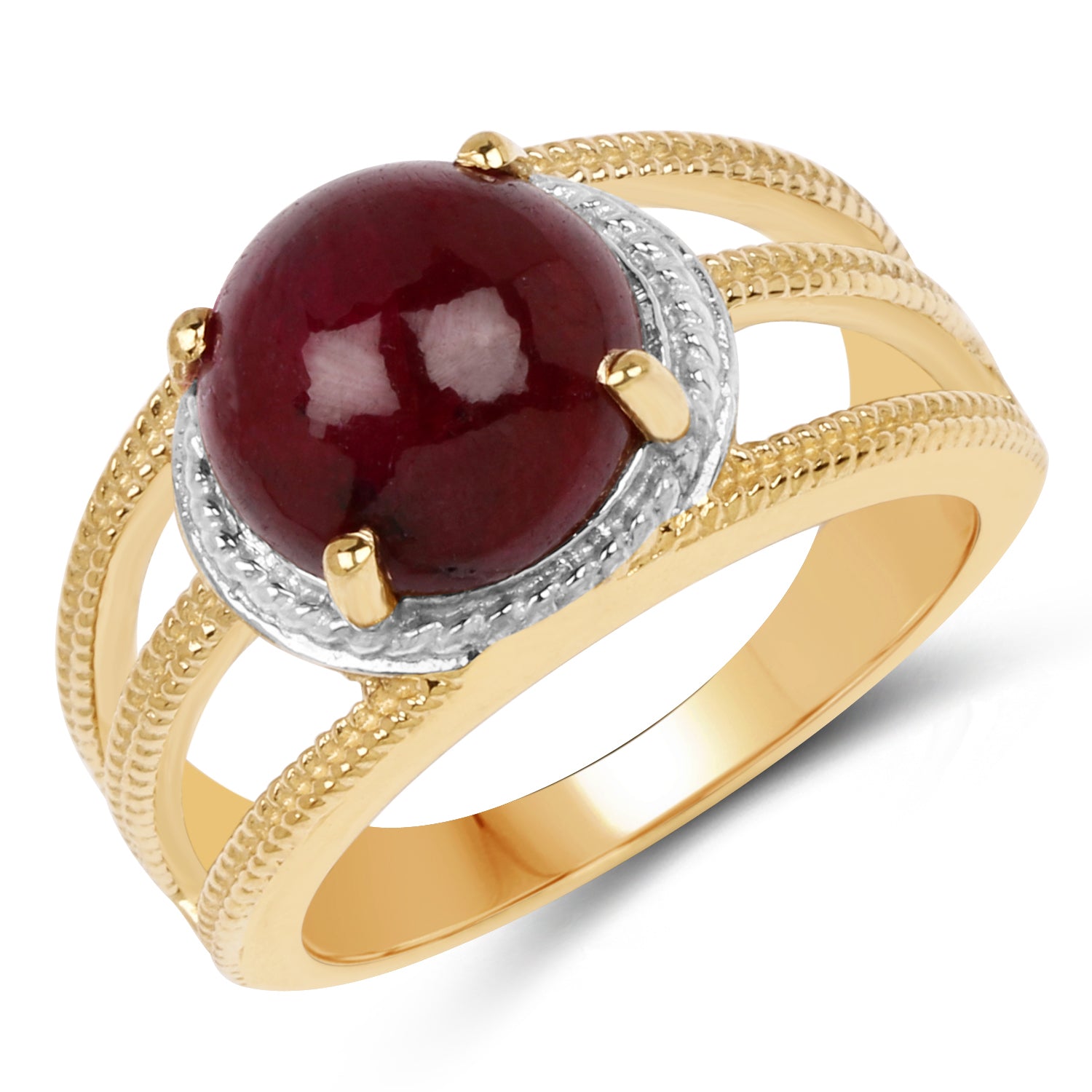 14K Yellow Gold Plated 5.48 Carat Genuine Ruby .925 Sterling Silver Ring