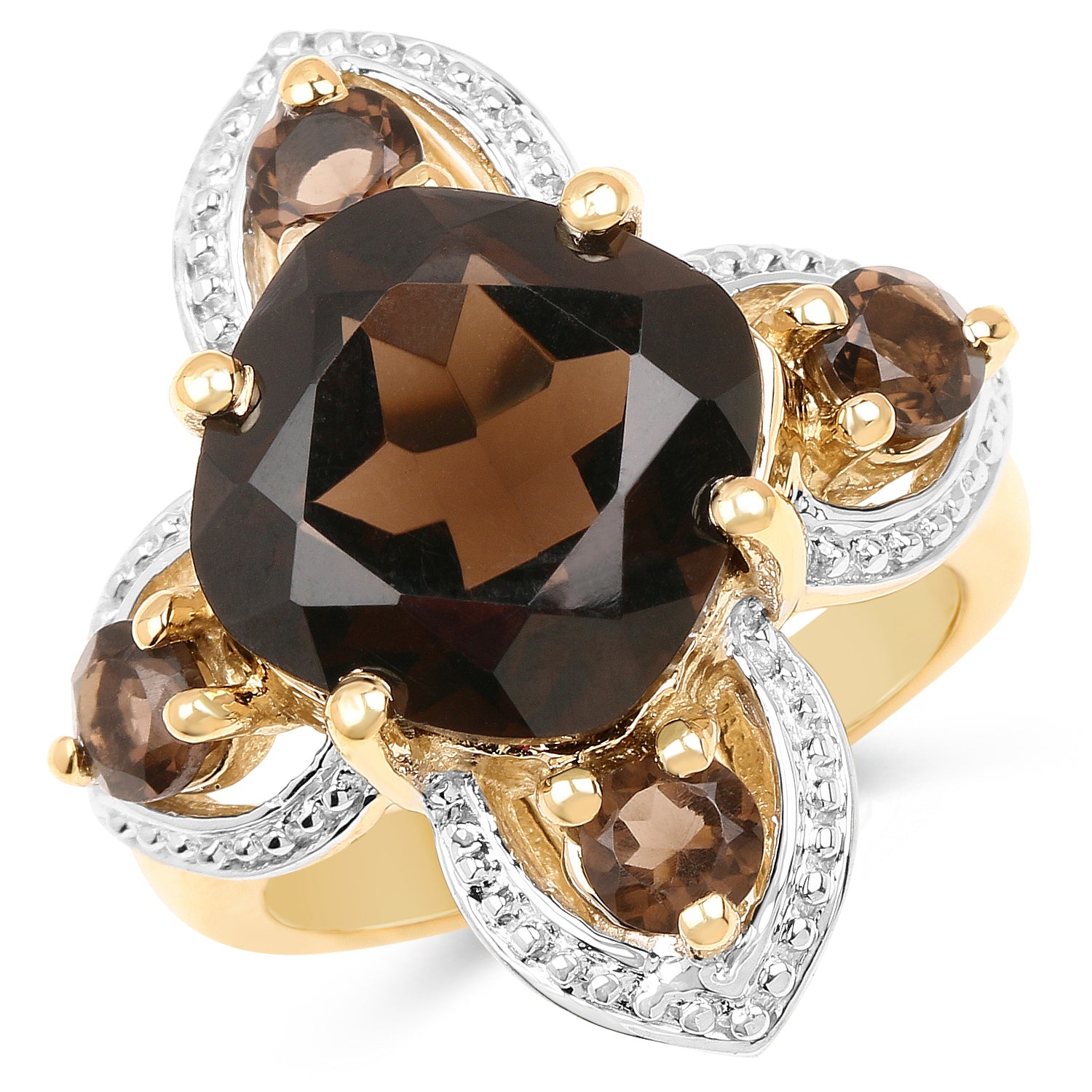 14K Yellow Gold Plated 5.92 Carat Genuine Smoky Quartz .925 Sterling Silver Ring
