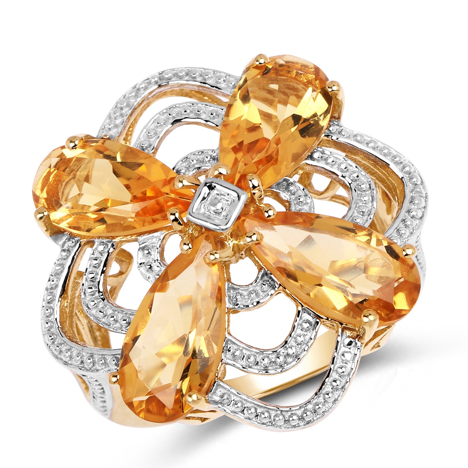 14K Yellow Gold Plated 8.80 Carat Genuine Citrine .925 Sterling Silver Ring