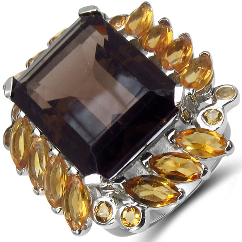 17.85 Carat Genuine Smoky Quartz & Citrine .925 Sterling Silver Ring