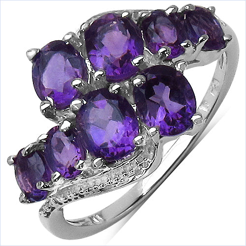 2.00 Carat Genuine Amethyst .925 Sterling Silver Ring Amethyst:Oval/5x4mm 4/1.36 ct.w + Amethyst:Oval/4x3mm 4/0.64 ct.w