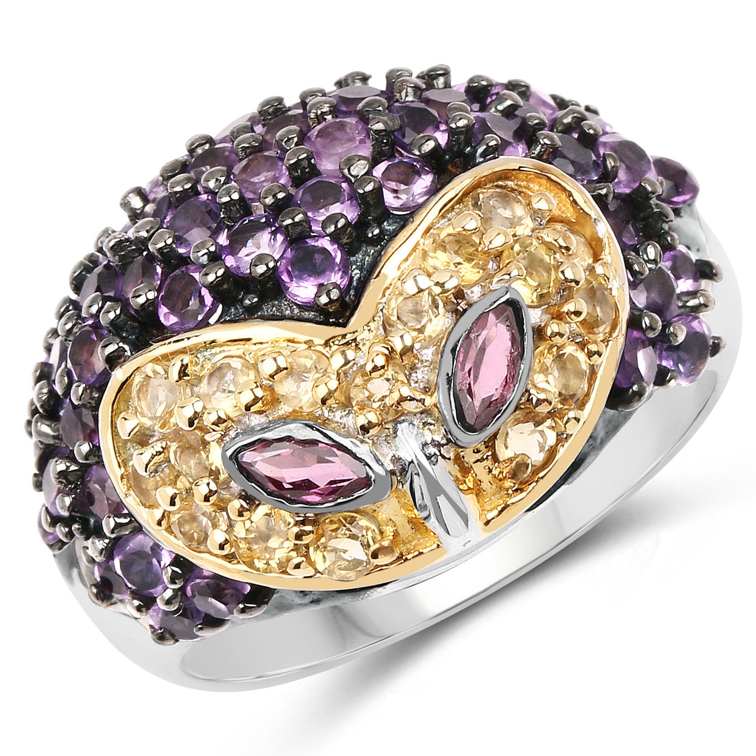 2.01 Carat Genuine Rhodolite and Amethyst .925 Sterling Silver Ring