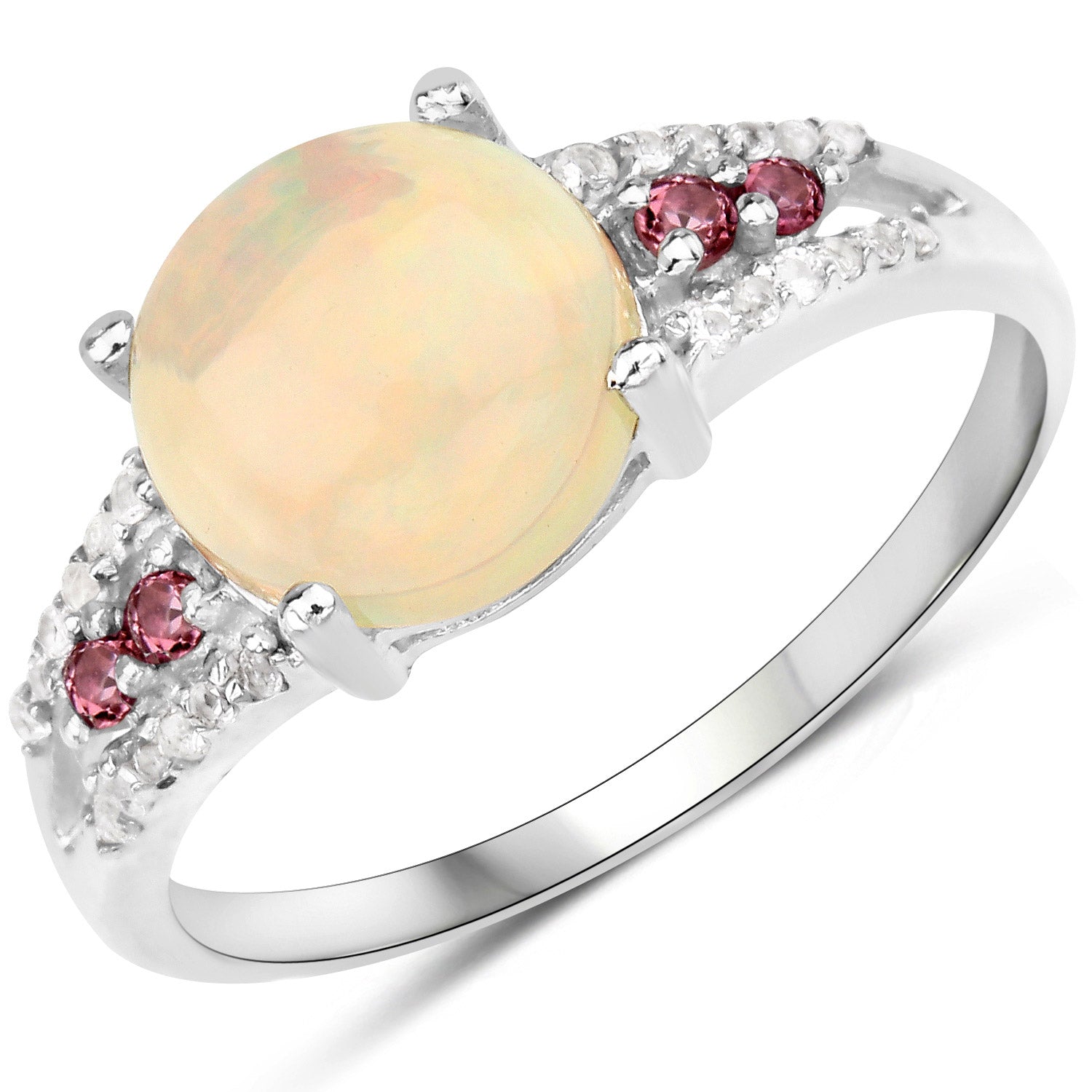 2.05 Carat Genuine Ethiopian Opal, Pink Tourmaline and White Topaz .925 Sterling Silver Ring