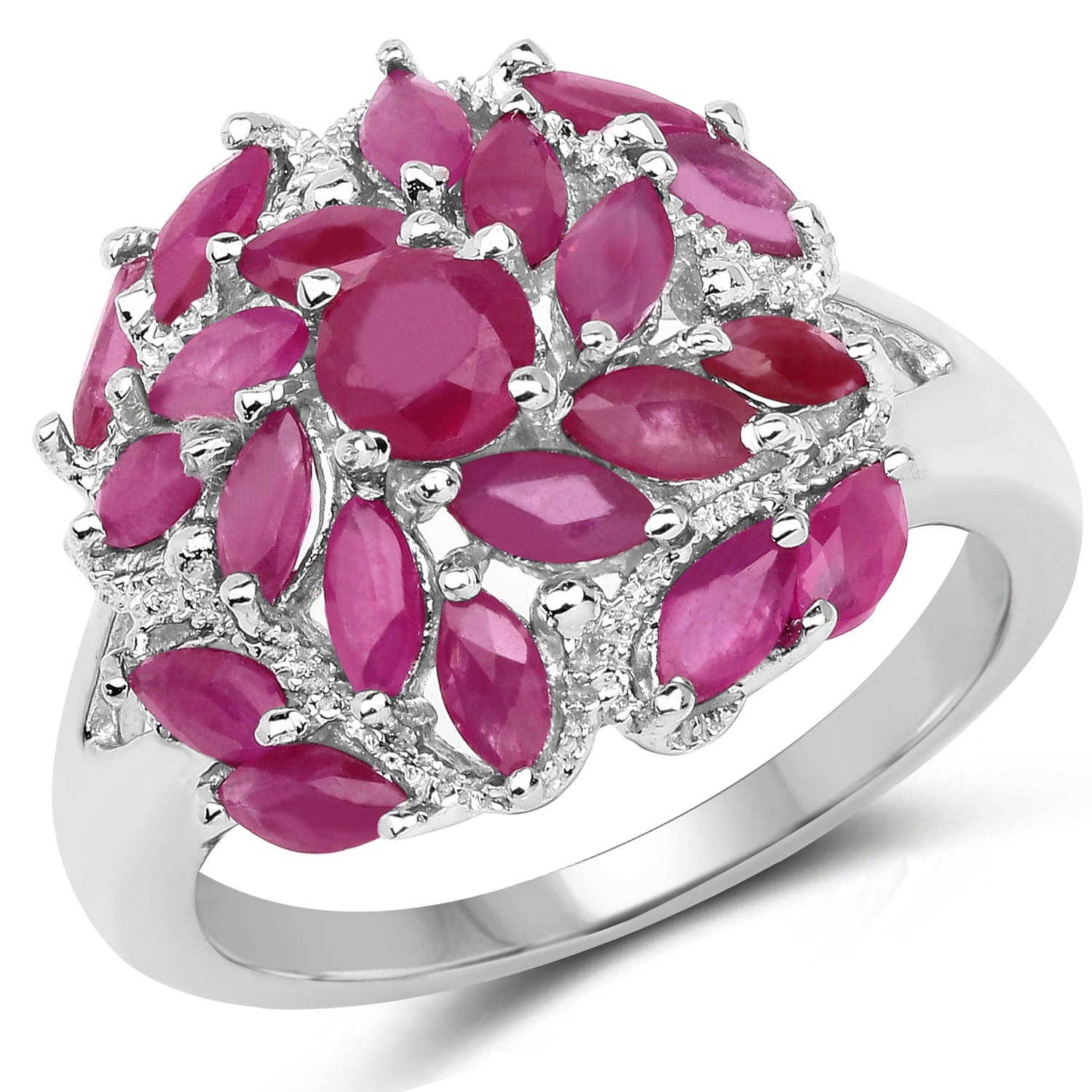 2.10 Carat Genuine Ruby .925 Sterling Silver Ring Ruby:Round/4.00mm 1/0.30 ct.w + Ruby:Marquise/4x2mm 20/1.80 ct.w