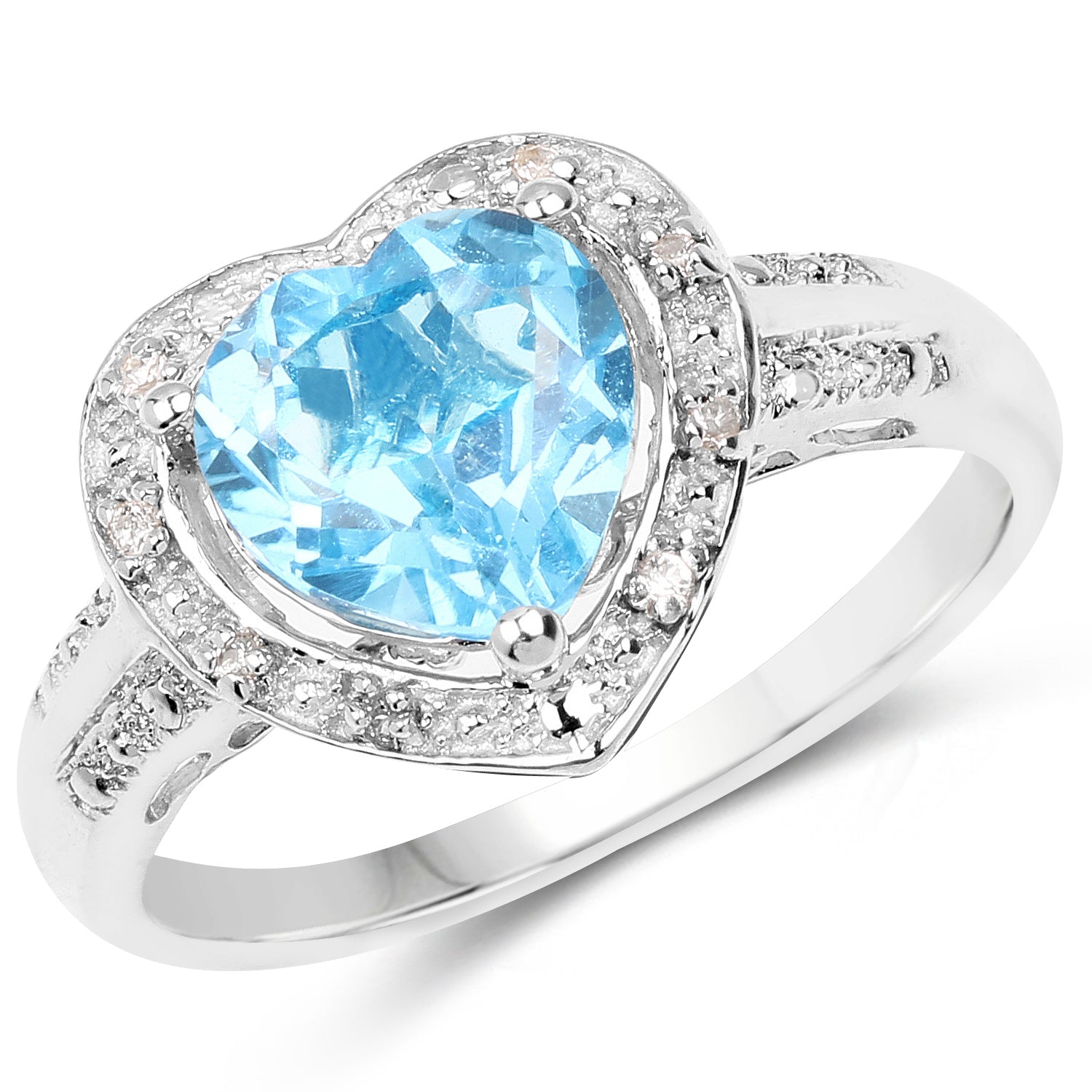 2.14 Carat Genuine Swiss Blue Topaz and White Topaz .925 Sterling Silver Ring