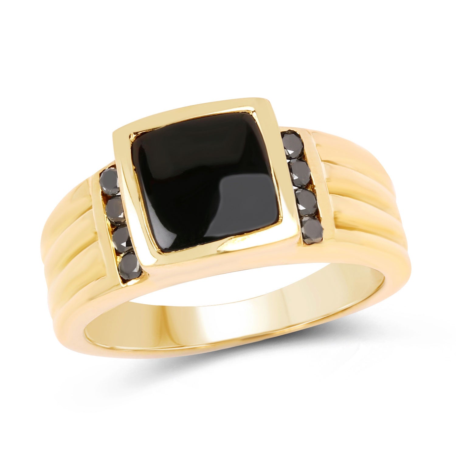 2.16 Carat Genuine Black Onyx and Black Diamond .925 Sterling Silver Ring