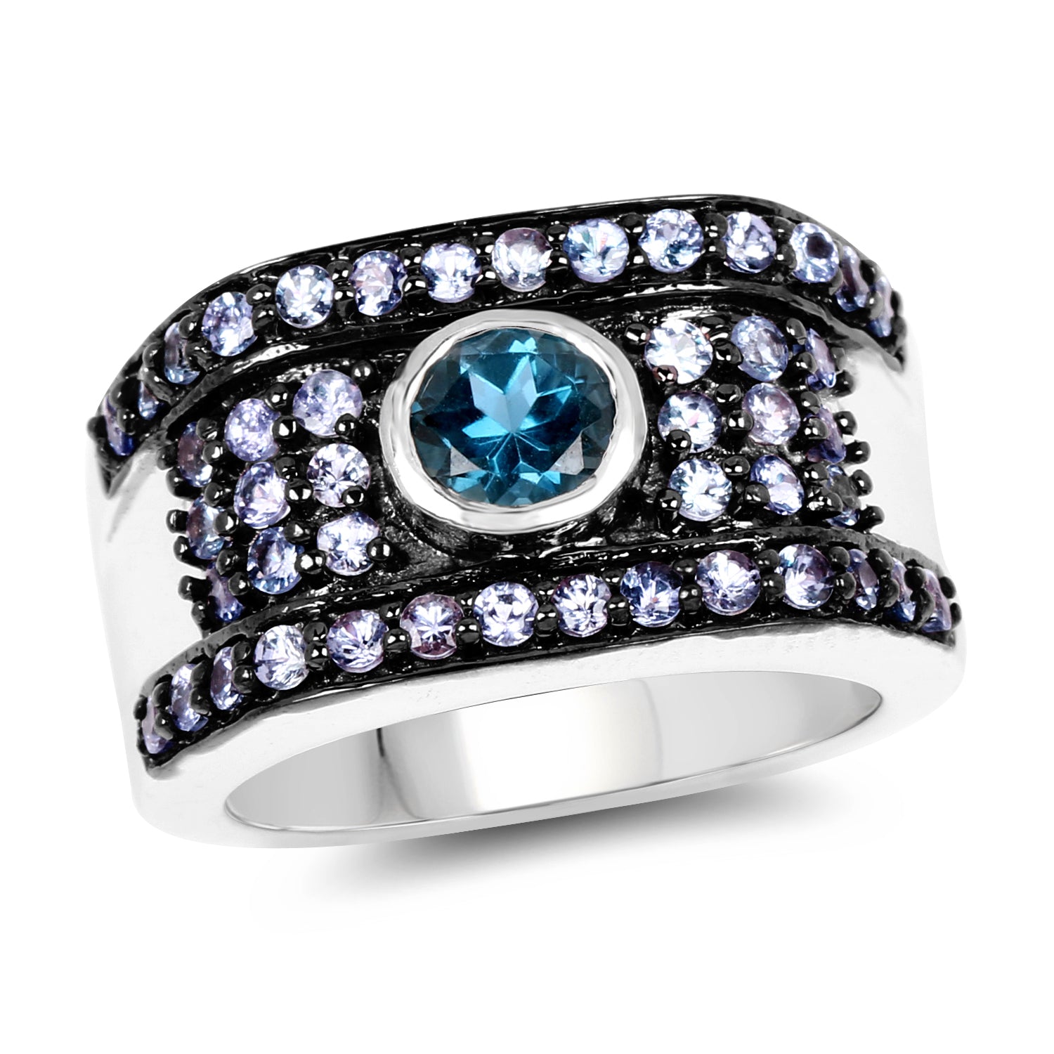 2.23 Carat Genuine Blue Topaz & Tanzanite .925 Sterling Silver Ring
