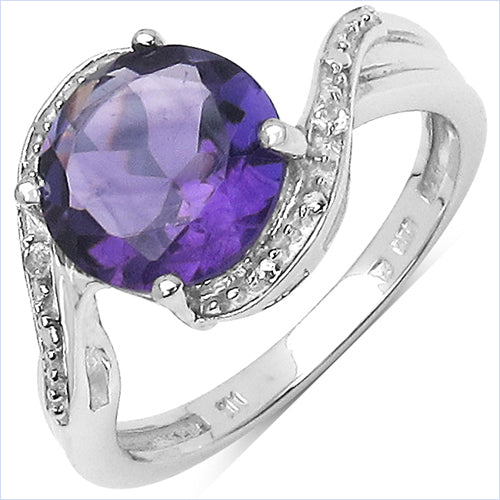2.43 Carat Genuine Amethyst & White Topaz .925 Sterling Silver Ring