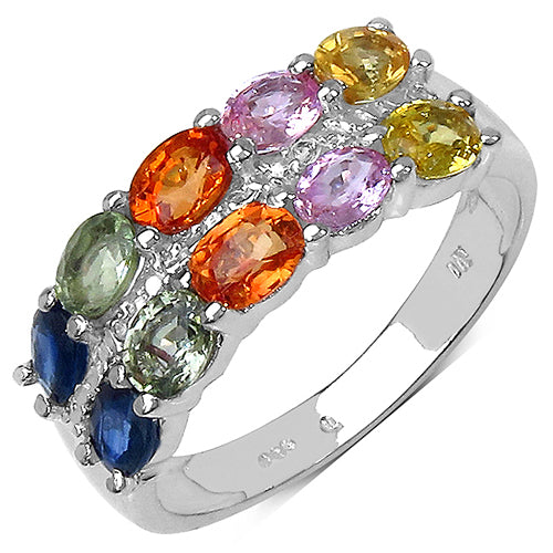 2.45 Carat Genuine Multi Stone .925 Sterling Silver Ring