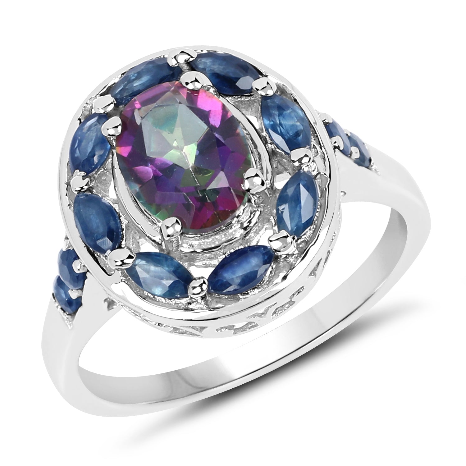 2.46 Carat Genuine Quartz Mystic and Blue Sapphire .925 Sterling Silver Ring