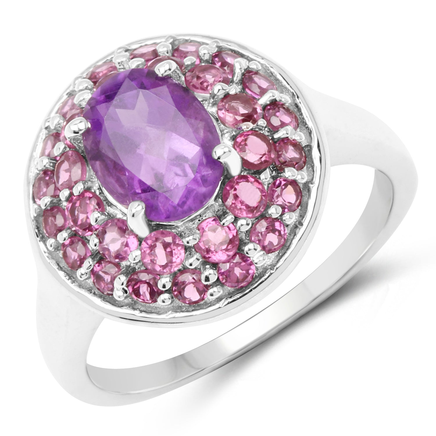 2.48 Carat Genuine Amethyst and Rhodolite .925 Sterling Silver Ring