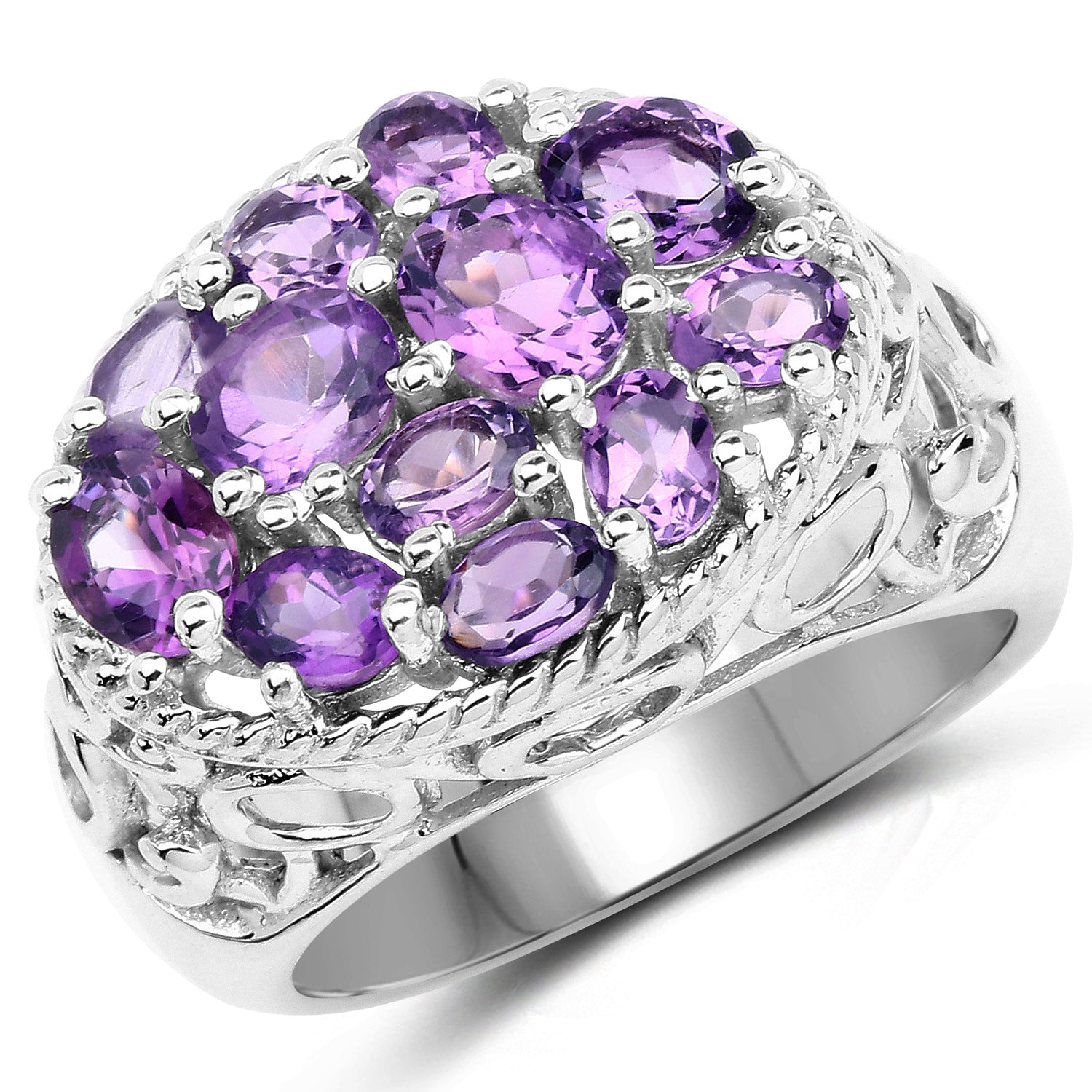 2.64 Carat Genuine Amethyst .925 Sterling Silver Ring Amethyst:Oval/5x4mm 4/1.36 ct.w + Amethyst:Oval/4x3mm 8/1.28 ct.w