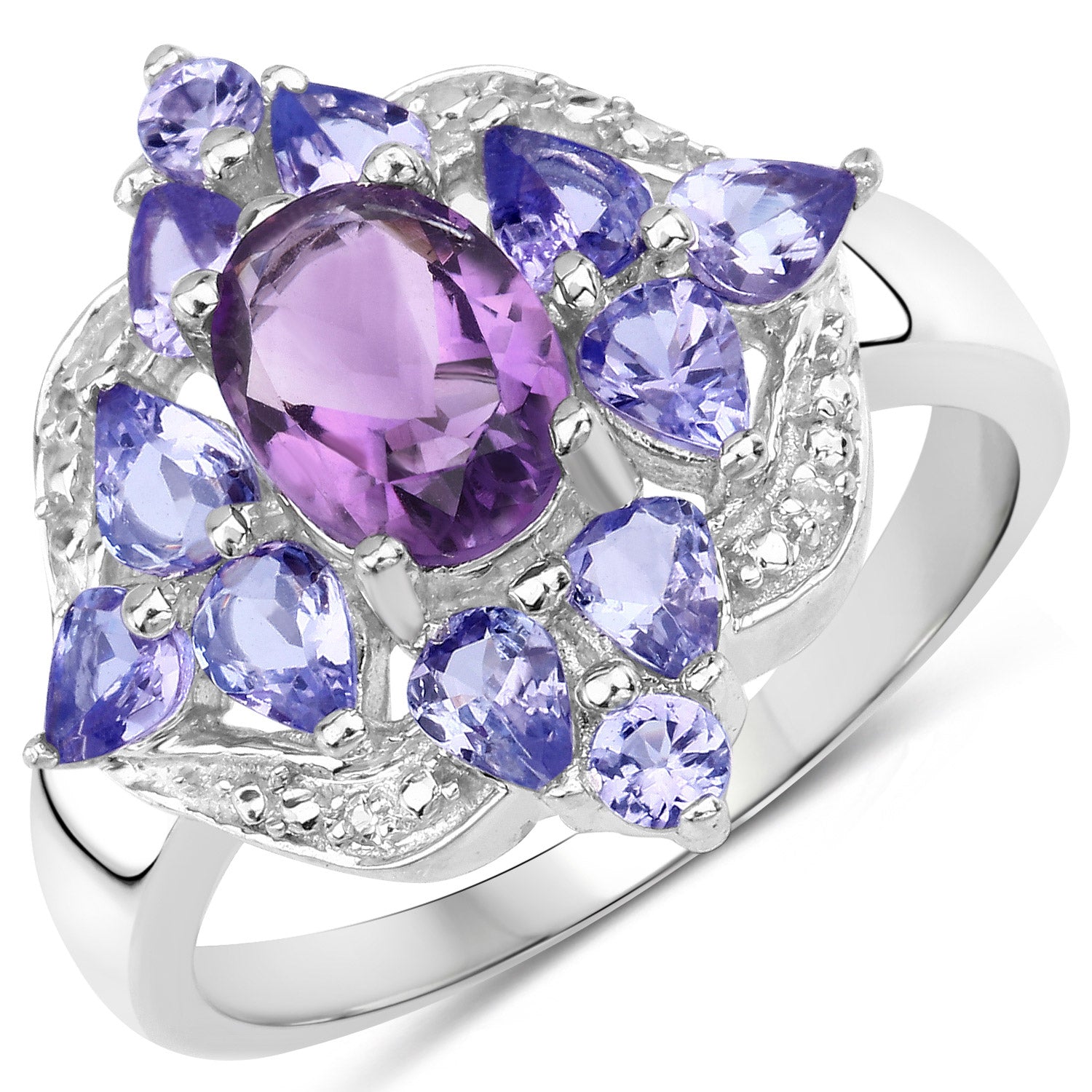 2.71 Carat Genuine Amethyst, Tanzanite and White Topaz .925 Sterling Silver Ring