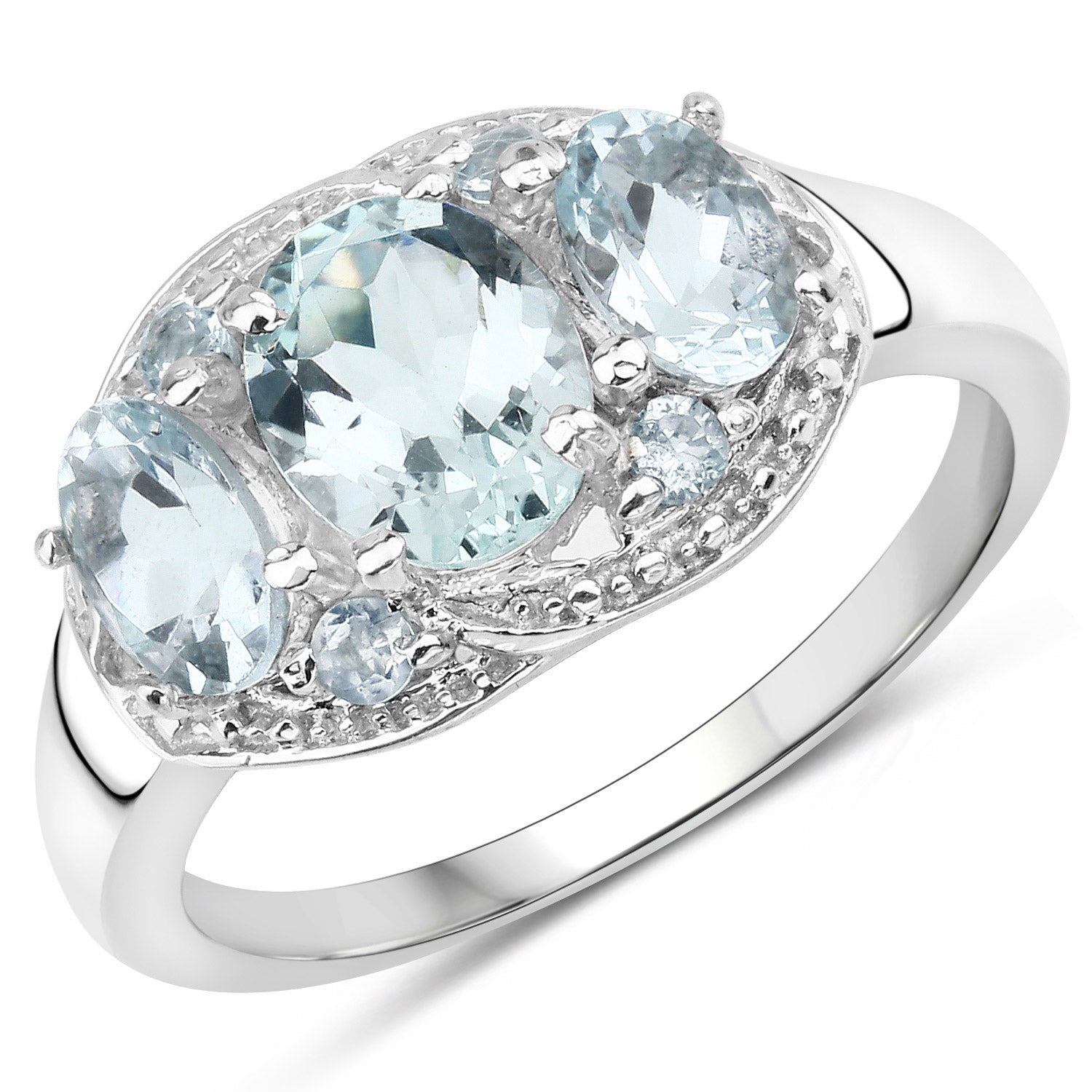 2.86 Carat Genuine Blue Topaz and White Topaz .925 Sterling Silver Ring