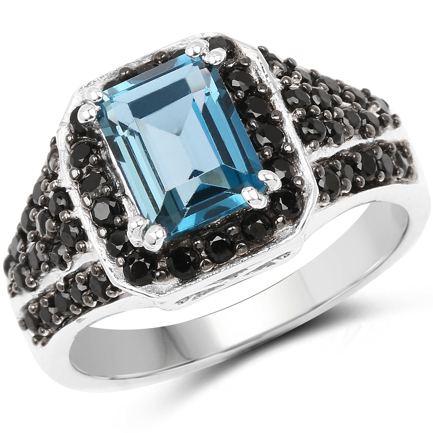 2.95 Carat Genuine London Blue Topaz & Black Spinel .925 Sterling Silver Ring