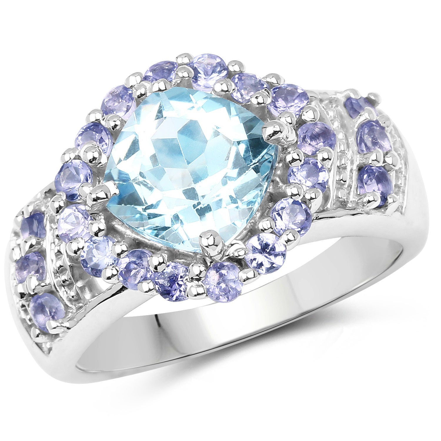3.07 Carat Genuine Blue Topaz and Tanzanite .925 Sterling Silver Ring