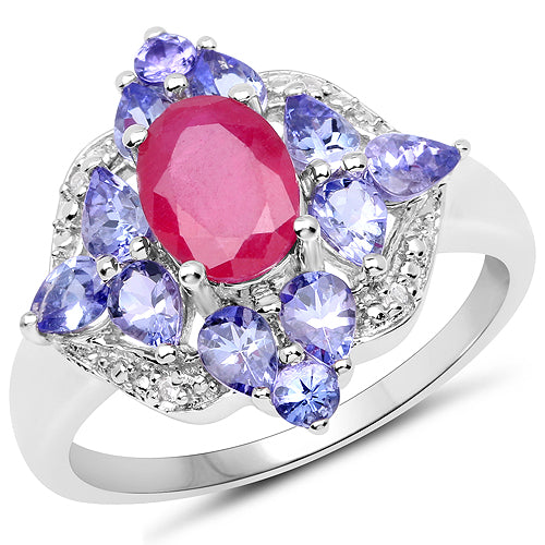 3.16 Carat Genuine Glass Filled Ruby, Tanzanite & White Topaz .925 Sterling Silver Ring