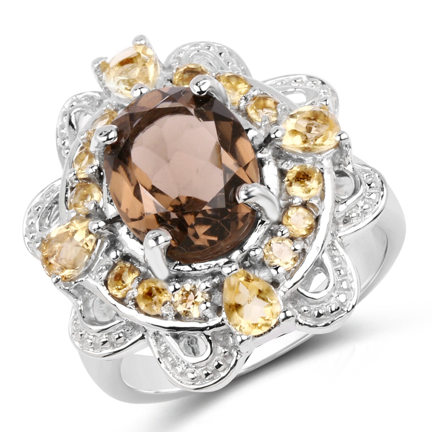 3.24 Carat Genuine Smoky Quartz & Citrine .925 Sterling Silver Ring