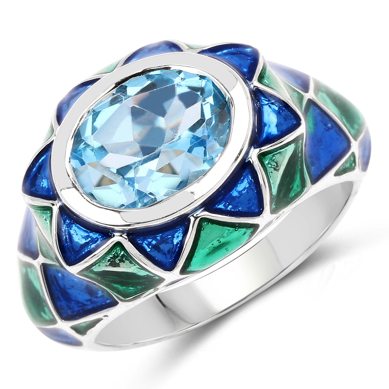 3.25 Carat Genuine Swiss Blue Topaz .925 Sterling Silver Ring