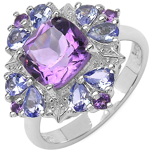 3.29 Carat Genuine Amethyst & Tanzanite .925 Sterling Silver Ring