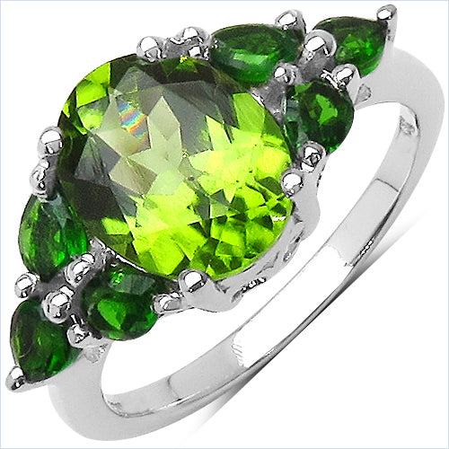 3.40 Carat Genuine Peridot & Chrome Diopside .925 Sterling Silver Ring