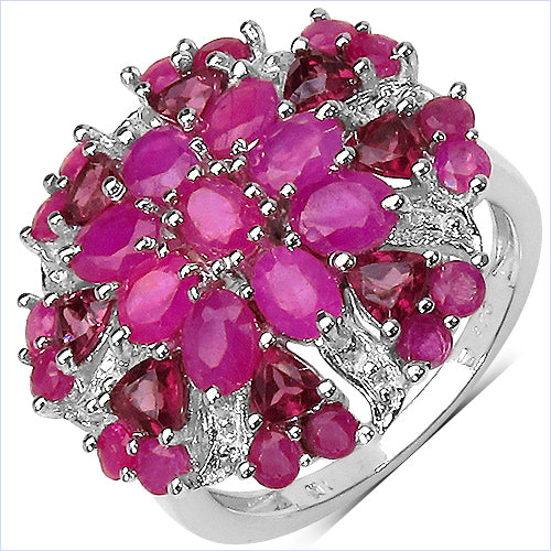 3.90 Carat Genuine Ruby & Rhodolite .925 Sterling Silver Ring