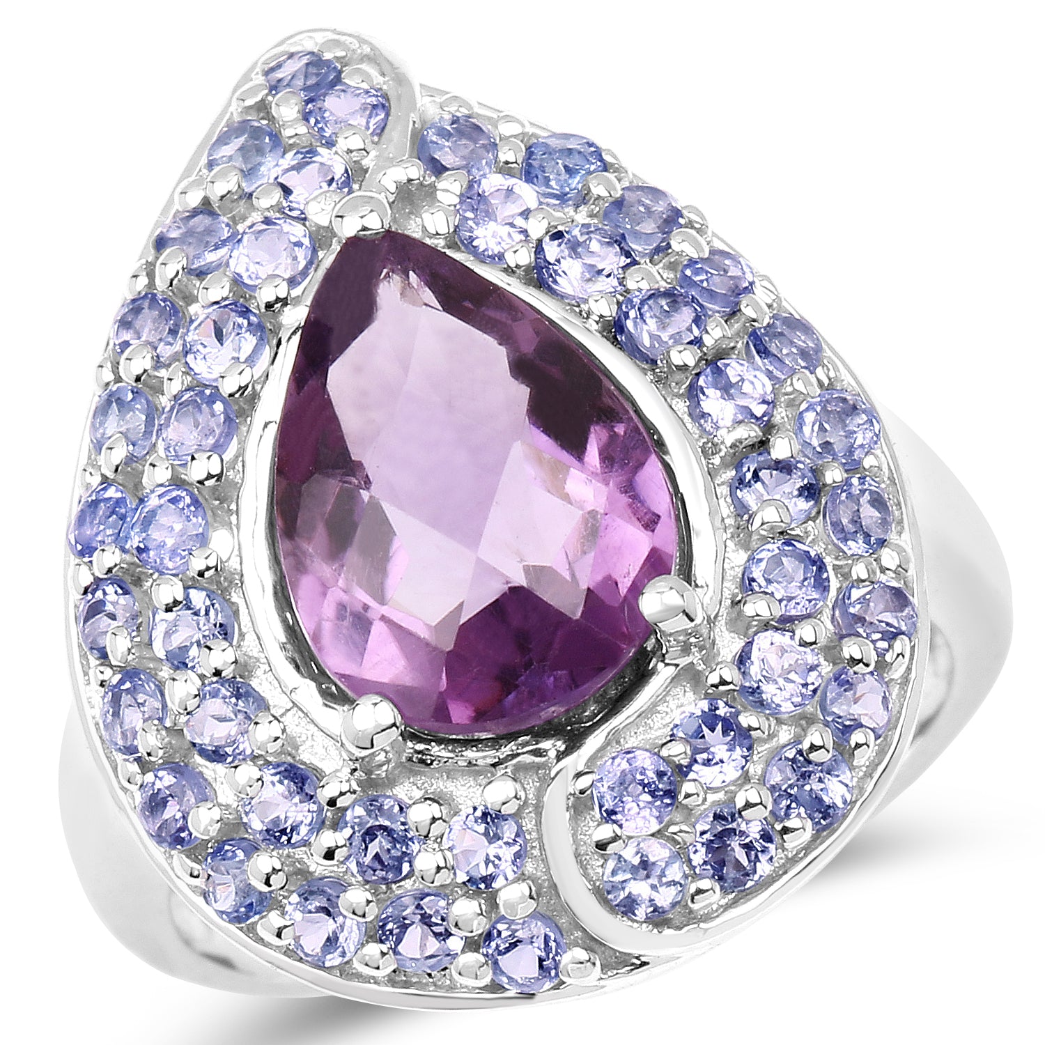 4.02 Carat Genuine Amethyst and Tanzanite .925 Sterling Silver Ring