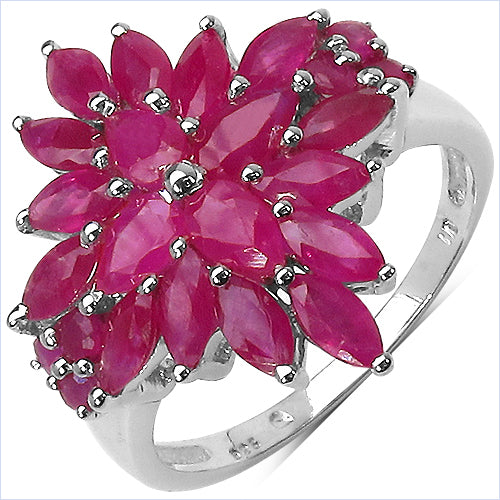 4.07 Carat Genuine Ruby .925 Sterling Silver Ring Ruby:Pear/5x3mm 4/1.00 ct.w + Ruby:Marquise/5x2.50mm 14/2.80 ct.w + Ruby:Round/2.00mm 6/0.27 ct.w