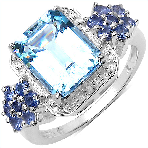 4.33 Carat Genuine Blue Topaz, Tanzanite & White Topaz .925 Sterling Silver Ring