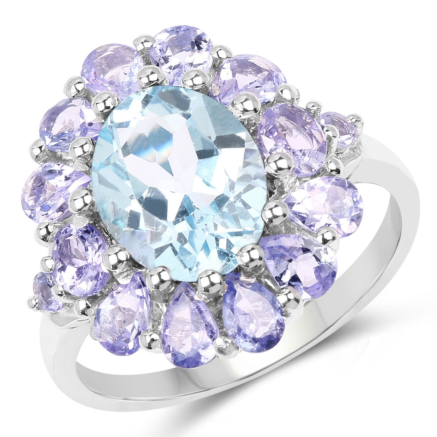 4.36 Carat Genuine Blue Topaz and Tanzanite .925 Sterling Silver Ring