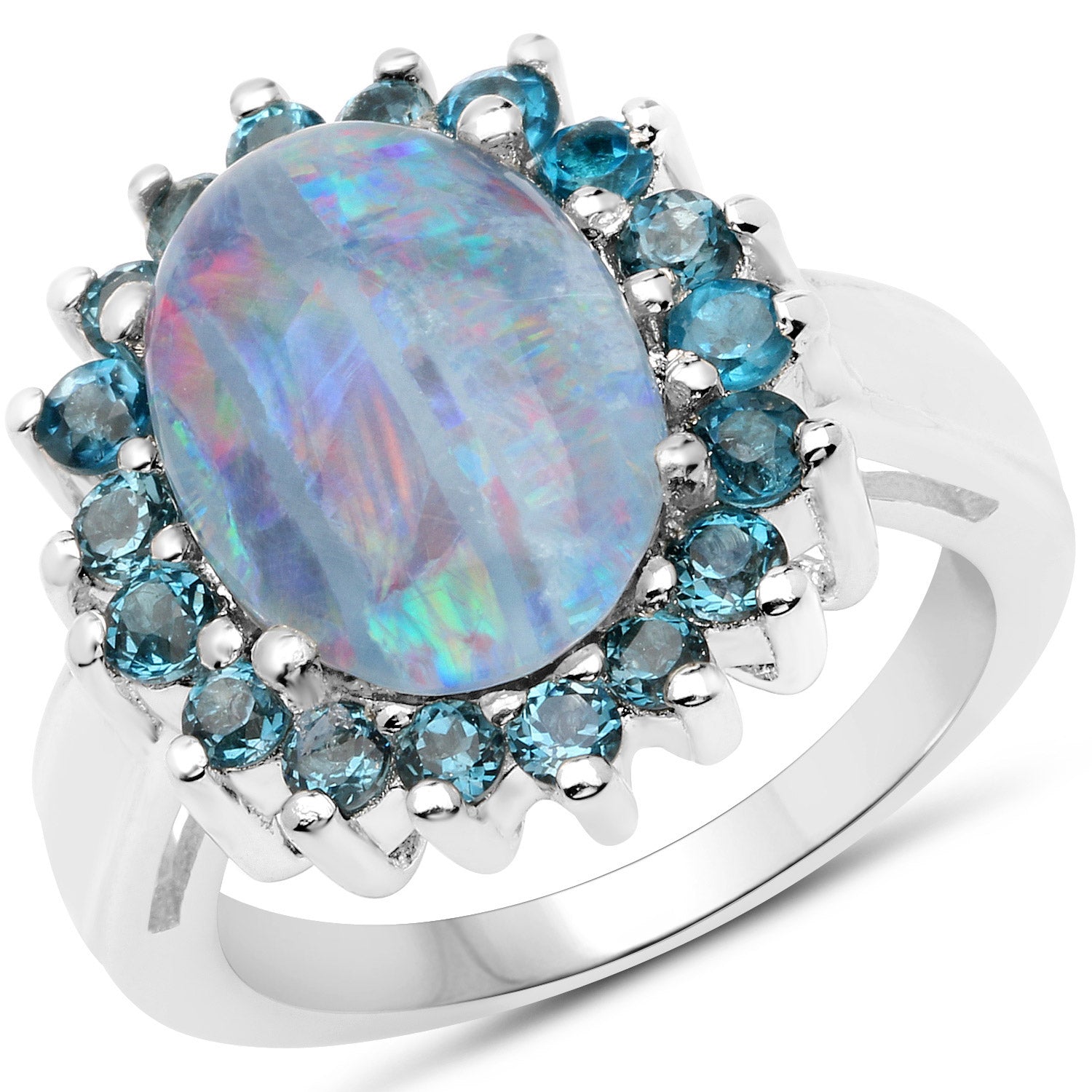4.81 Carat Genuine Doublet Opal and London Blue Topaz .925 Sterling Silver Ring